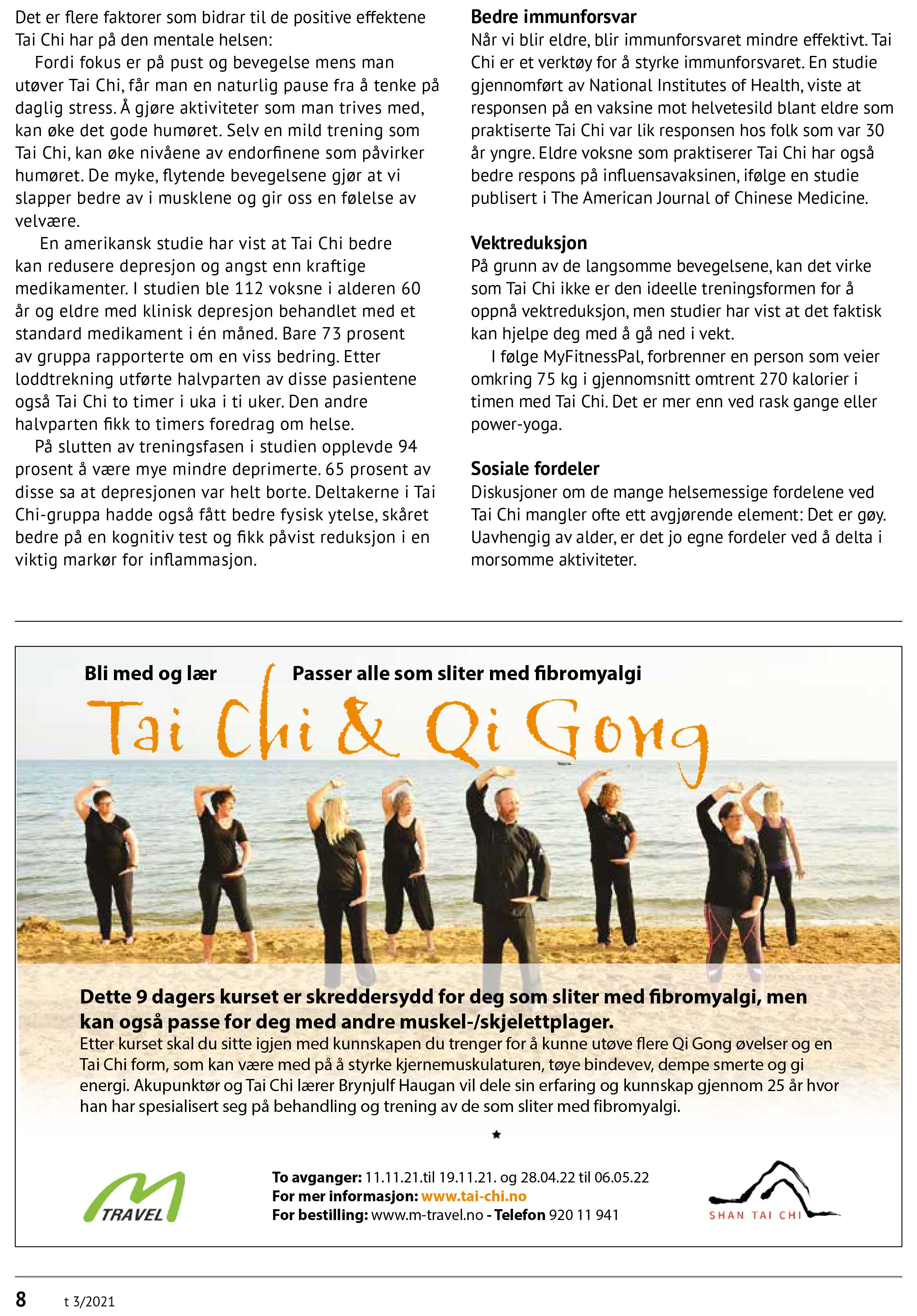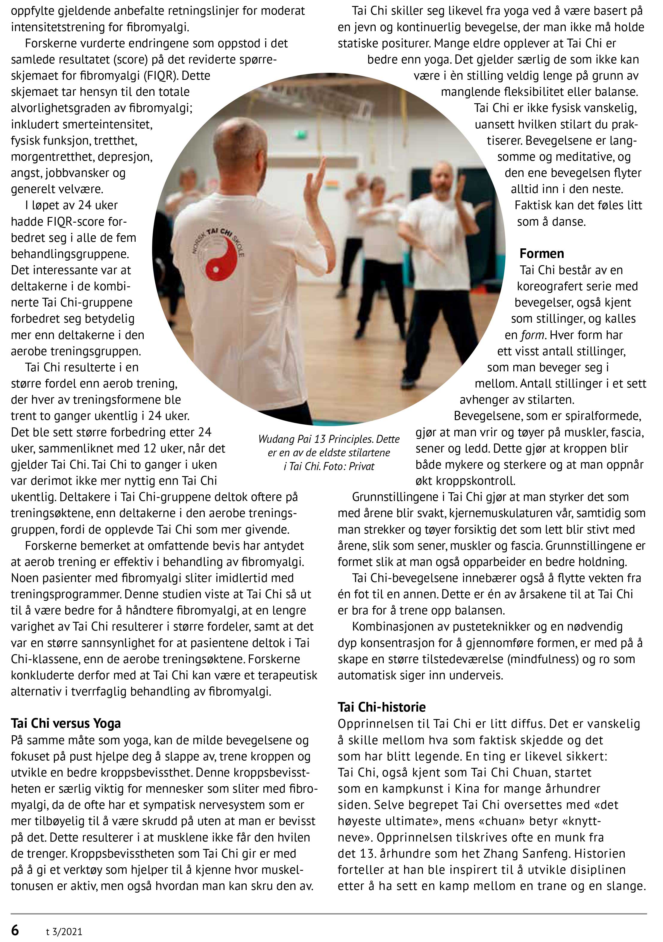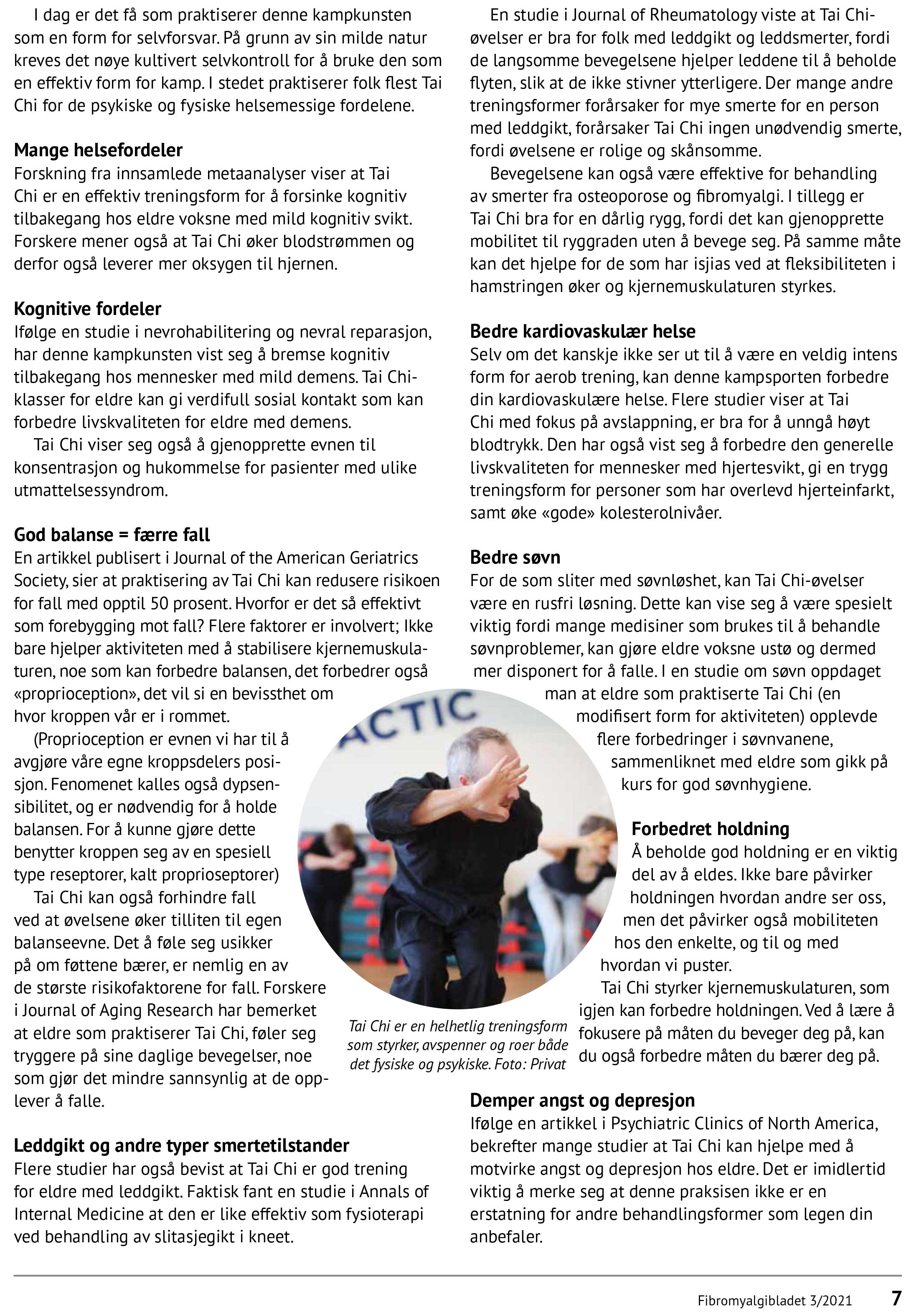 Flere studier har bevist at Tai Chi er en god trening for eldre med leddgikt. Faktisk fant en studie i Annals of Internal Medicine at den er like effektiv som fysioterapi ved behandling av slitasjegikt i kneet.